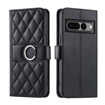For Google Pixel 7 Ring Buckle Rhombic Leather Phone Case(Black)