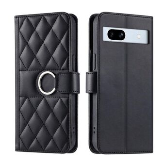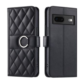 For Google Pixel 7a Ring Buckle Rhombic Leather Phone Case(Black)