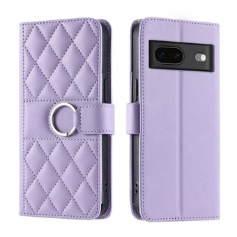 For Google Pixel 7a Ring Buckle Rhombic Leather Phone Case(Purple)