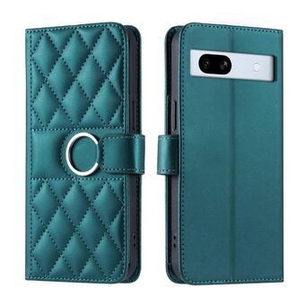 For Google Pixel 7a Ring Buckle Rhombic Leather Phone Case(Green)