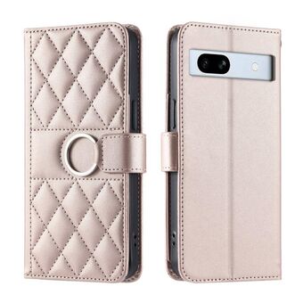For Google Pixel 7a Ring Buckle Rhombic Leather Phone Case(Rose Gold)