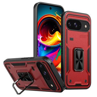 For Google Pixel 9 / 9 Pro Ring Holder PC Hybrid TPU Phone Case(Red)