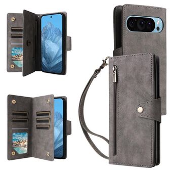 For Google Pixel 9 Rivet Buckle 9 Cards Three Fold Leather Phone Case(Grey)