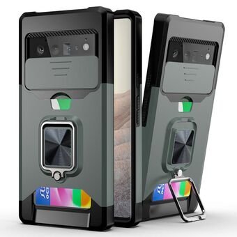 Για το Google Pixel 6 Συρόμενο κάλυμμα κάμερας Σχεδιασμός PC + Αδιάβροχη θήκη TPU με θήκη δαχτυλιδιού & υποδοχή κάρτας (σκούρο πράσινο)