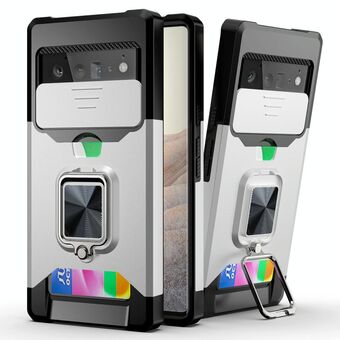 Για το Google Pixel 6 Συρόμενο κάλυμμα κάμερας Σχεδιασμός PC + TPU Αδιάβροχη θήκη με θήκη δαχτυλιδιού & υποδοχή κάρτας (Ασημί)