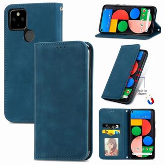 Για το Google Pixel 5a 5G Retro Skin Feel Business Μαγνητική οριζόντια Flip δερμάτινη θήκη με θήκη & υποδοχές καρτών & πορτοφόλι & κορνίζα φωτογραφιών (γκρι)