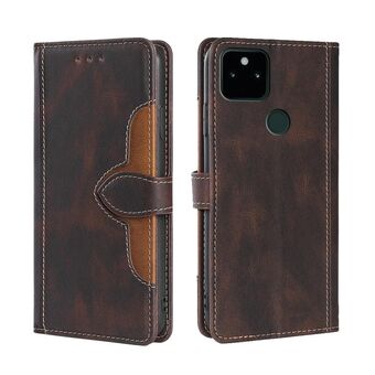 Ρετρό υφή αντίθεση χρώμα πλευρά πόρπη οριζόντια Flip δερμάτινη θήκη με κάτοχο & υποδοχές καρτών & πορτοφόλι για το Google Pixel 5 (καφέ)