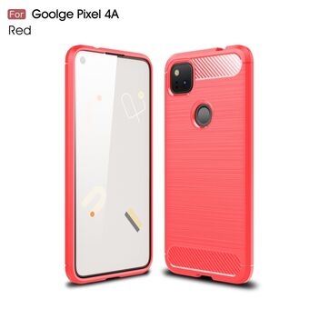 Για το Google Pixel 4a βουρτσισμένη υφή Carbon Fiber Shockproof TPU Case (κόκκινο)