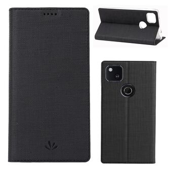 Προστατευτική θήκη με υφή για Google Pixel 5 XL R64, μονή οριζόντια αναδιπλούμενη, με βάση, υποδοχές καρτών, πορτοφόλι και κορνίζα φωτογραφίας (Μαύρο)