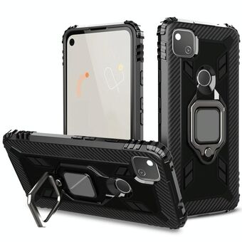 Για το Google Pixel 4A 5G Προστατευτική θήκη από ανθρακονήματα με περιστρεφόμενη θήκη δακτυλίου 360 μοιρών (Μαύρο)