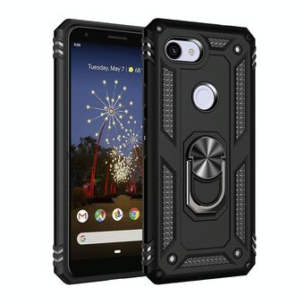 Για το Google Pixel 3a Αδιάβροχη θήκη προστασίας TPU + PC με περιστρεφόμενη θήκη 360 μοιρών (Μαύρο)