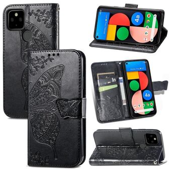 Για το Google Pixel 5A Πεταλούδα αγάπη λουλούδι ανάγλυφο οριζόντια Flip δερμάτινη θήκη με στήριγμα & υποδοχή κάρτας & πορτοφόλι & κορδόνι (μαύρο)