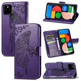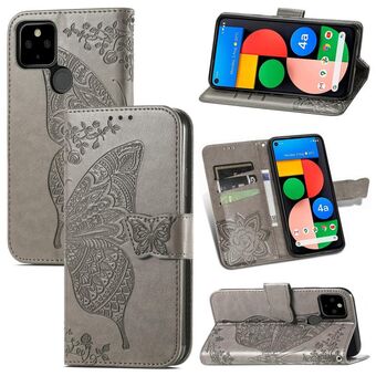 Για το Google Pixel 5A Πεταλούδα αγάπη λουλούδι ανάγλυφο οριζόντια Flip δερμάτινη θήκη με στήριγμα & υποδοχή κάρτας & πορτοφόλι & Lanyard (γκρι)