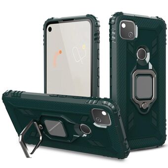 Για το Google Pixel 4a Προστατευτική θήκη από ανθρακονήματα με περιστρεφόμενη θήκη δακτυλίου 360 μοιρών (πράσινο)
