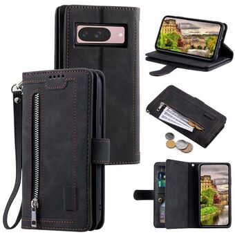 For Google Pixel 9a Nine Card Zipper Bag Leather Phone Case with Lanyard(Black)