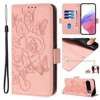 For Google Pixel 9a Embossed Rose RFID Anti-theft Leather Phone Case(Pink)