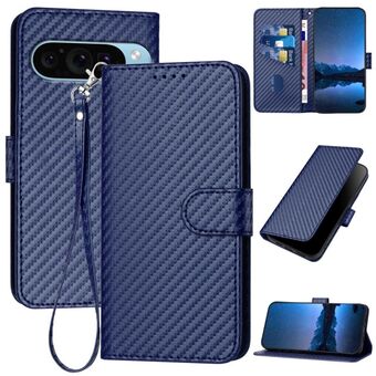 For Google Pixel 9 YX0070 Carbon Fiber Buckle Leather Phone Case with Lanyard(Black)