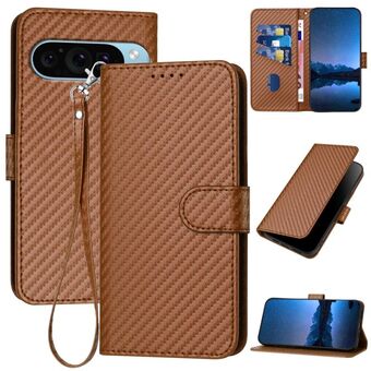 For Google Pixel 9 YX0070 Carbon Fiber Buckle Leather Phone Case with Lanyard(Coffee)