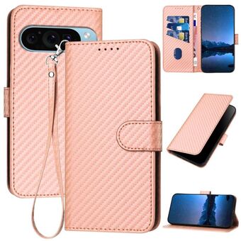 For Google Pixel 9 YX0070 Carbon Fiber Buckle Leather Phone Case with Lanyard(Pink)