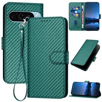 For Google Pixel 9 YX0070 Carbon Fiber Buckle Leather Phone Case with Lanyard(Dark Green)