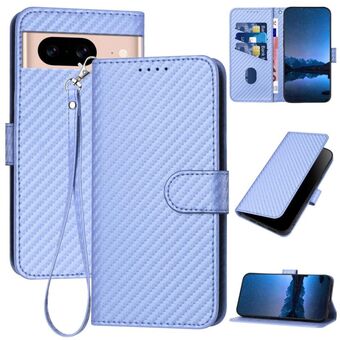 For Google Pixel 8 YX0070 Carbon Fiber Buckle Leather Phone Case with Lanyard(Light Purple)