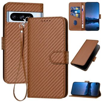 For Google Pixel 8 YX0070 Carbon Fiber Buckle Leather Phone Case with Lanyard(Coffee)