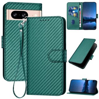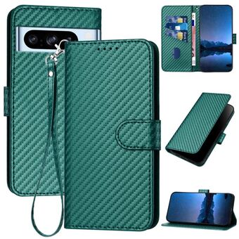 For Google Pixel 8 Pro YX0070 Carbon Fiber Buckle Leather Phone Case with Lanyard(Dark Green)
