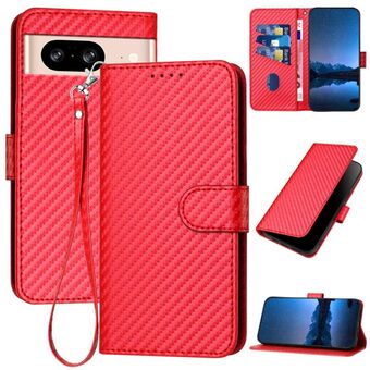 For Google Pixel 8 YX0070 Carbon Fiber Buckle Leather Phone Case with Lanyard(Red)