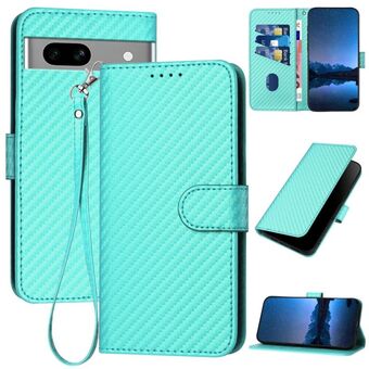 For Google Pixel 8a YX0070 Carbon Fiber Buckle Leather Phone Case with Lanyard(Dark Green)