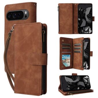 For Google Pixel 9 Pro Skin Feel Magnetic Flip Leather Phone Case(Brown)