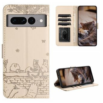For Google Pixel 7 Pro Cartoon Cats Leather Phone Case(Beige White)
