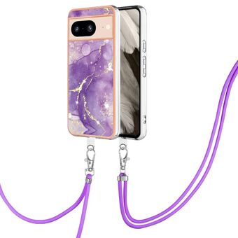 For Google Pixel 8 Electroplating Marble Dual-side IMD Phone Case with Lanyard(Purple 002)