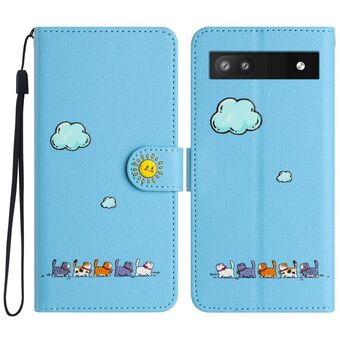 For Google Pixel 6a Cartoon Cats Leather Phone Case(Blue)