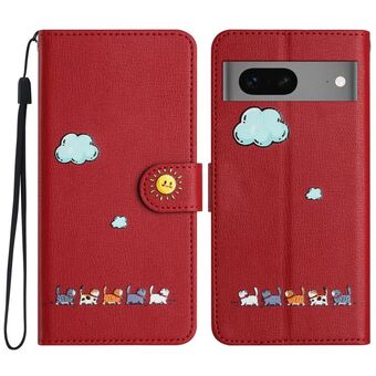 For Google Pixel 7a Cartoon Cats Leather Phone Case(Red)