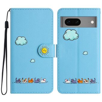 For Google Pixel 7a Cartoon Cats Leather Phone Case(Blue)
