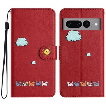 For Google Pixel 7 Cartoon Cats Leather Phone Case(Red)