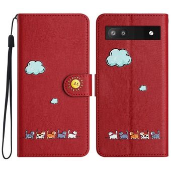 For Google Pixel 6a Cartoon Cats Leather Phone Case(Red)