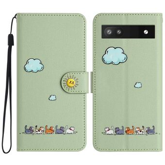 For Google Pixel 6a Cartoon Cats Leather Phone Case(Green)