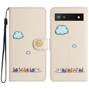 For Google Pixel 6a Cartoon Cats Leather Phone Case(Beige White)