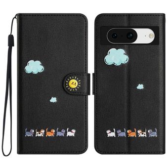 For Google Pixel 7a Cartoon Cats Leather Phone Case(Black)