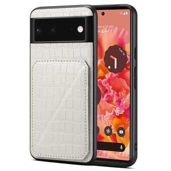 For Google Pixel 6 Denior Crocodile Texture Holder Electroplating Phone Case(White) (Denior)