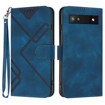For Google Pixel 6a Line Pattern Skin Feel Leather Phone Case(Royal Blue)