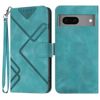 For Google Pixel 8a Line Pattern Skin Feel Leather Phone Case(Light Blue)
