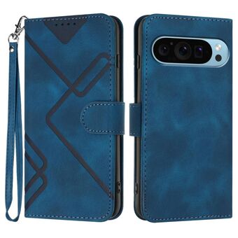 For Google Pixel 9 Pro Line Pattern Skin Feel Leather Phone Case(Royal Blue)