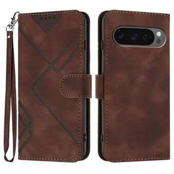 For Google Pixel 9 Pro Line Pattern Skin Feel Leather Phone Case(Coffee)