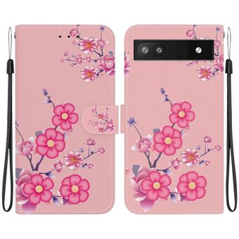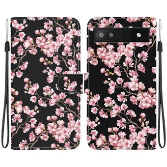 For Google Pixel 6a Crystal Texture Colored Drawing Leather Phone Case(Cherry Blossoms)
