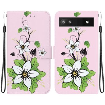 For Google Pixel 6a Crystal Texture Colored Drawing Leather Phone Case(Lily)