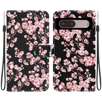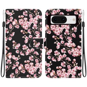 For Google Pixel 8 Crystal Texture Colored Drawing Leather Phone Case(Cherry Blossoms)
