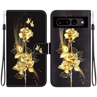 For Google Pixel 7 Crystal Texture Colored Drawing Leather Phone Case(Gold Butterfly Rose)