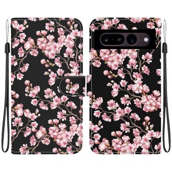 For Google Pixel 7 Pro Crystal Texture Colored Drawing Leather Phone Case(Cherry Blossoms)
